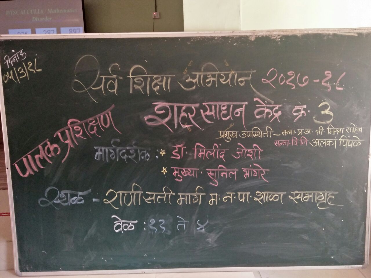 Training program on Learning Disorders at URC (Urban Resource Center) No. 3 of Malad BMC School on 5/3/18 for parents and teachers.