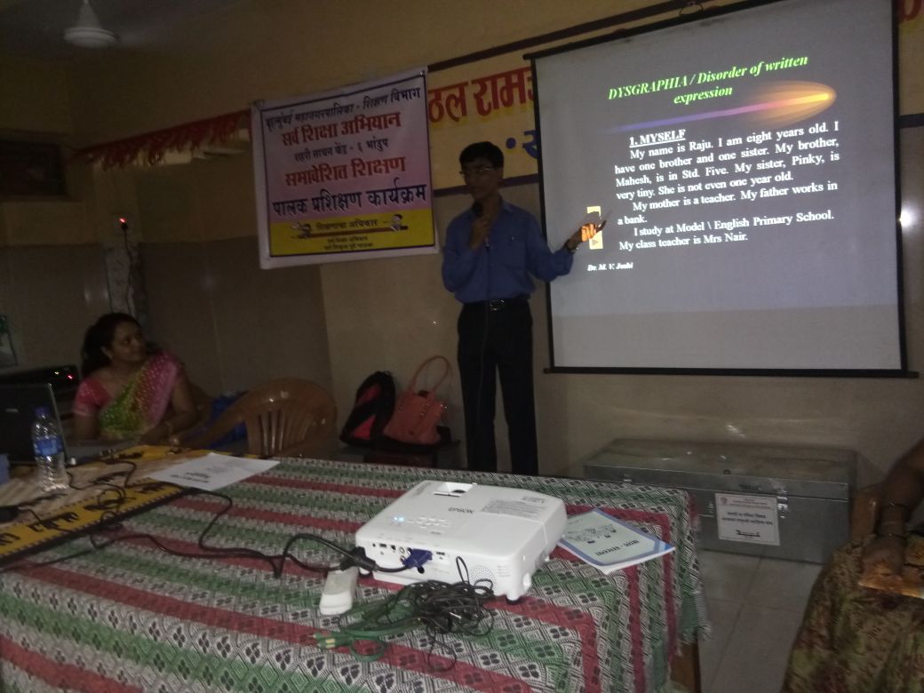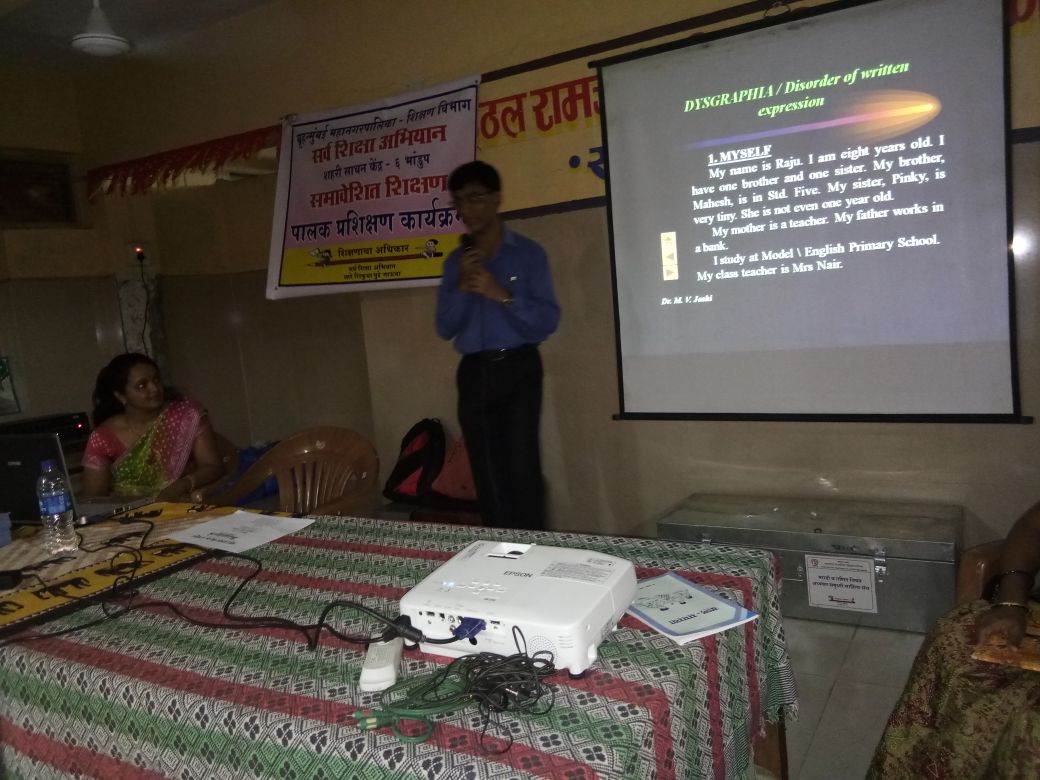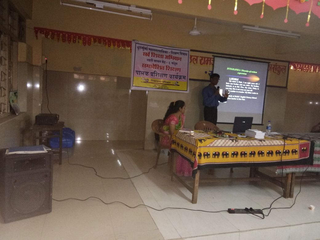Training program on Learning Disorders at URC (Urban Resource Center) No. 6 of Bhandup BMC school on 7/3/18 for parents and teachers.